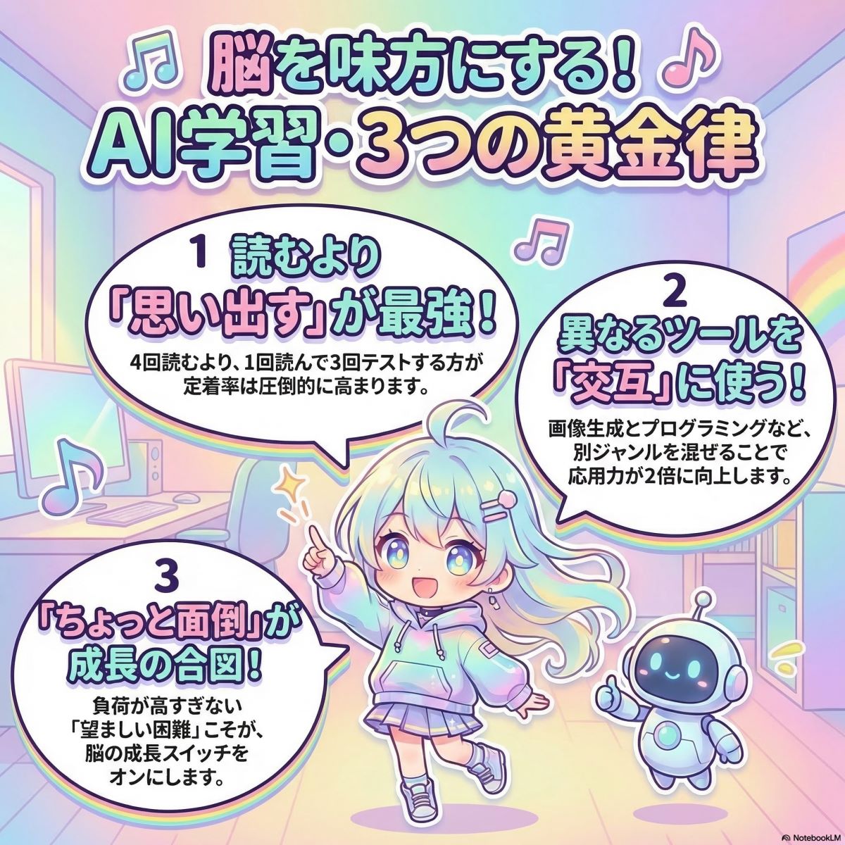 「画像生成AIの使い方は覚えたけど、コーディング支援AIはまた別で覚え直さないと……」と感じたことはありませんか?これはインターリーブ学習(交互学習)の観点から説明できます。